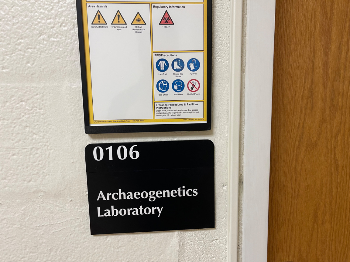 Focused on ancient/archaeological and environmental DNA, the Archaeogenetics Laboratory is a restricted personnel laboratory (graduate students and collaborators) at the Department of Anthropology. In its cleaned room, we explore questions about human origins, evolution and adaptation, as well as interaction and co-existence with other species. The clean room follow strict protocols for its operation, envolving an isolated gowning area, full body PPE, a room-wide UV-light system and controlled air filtration.