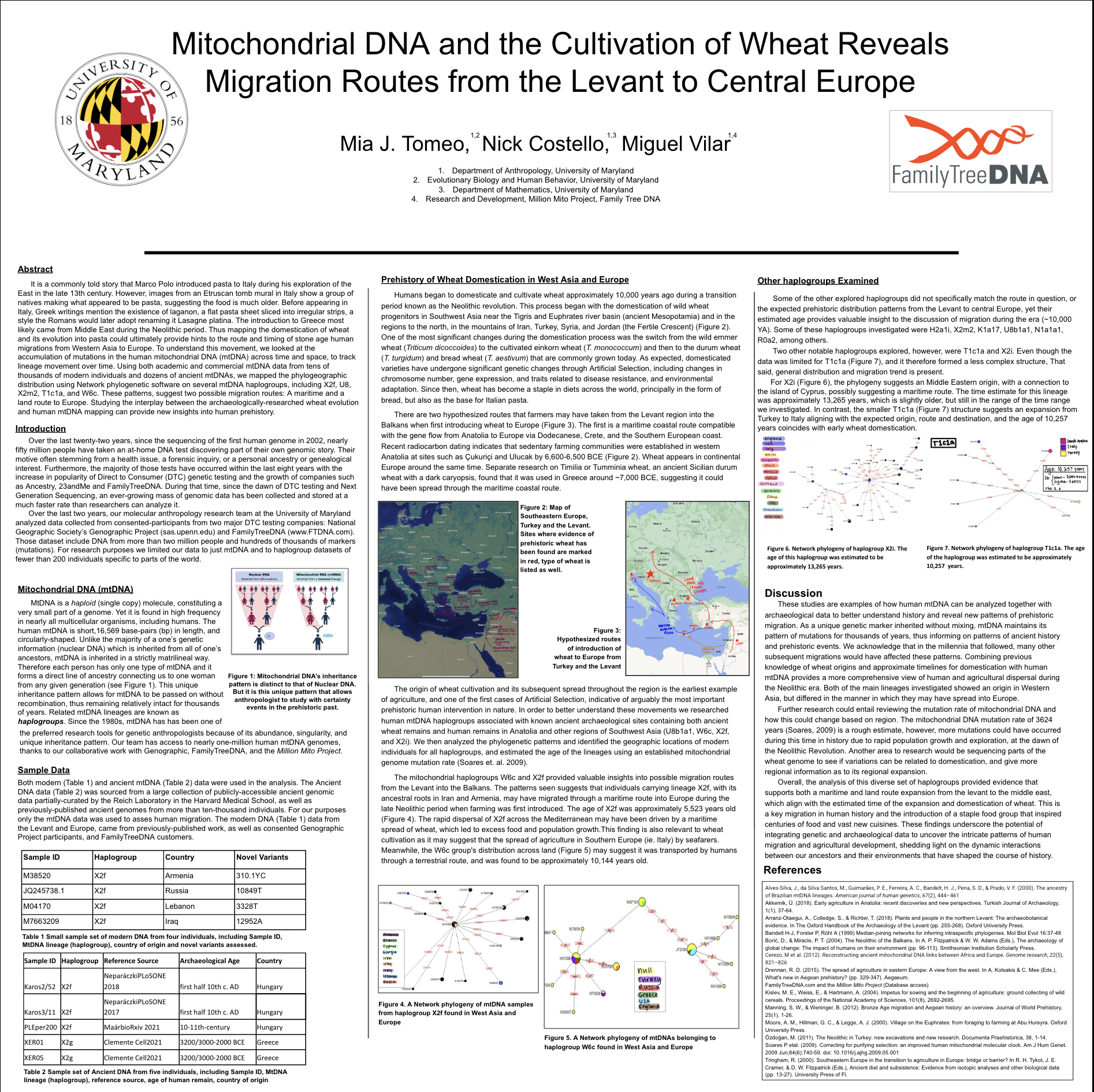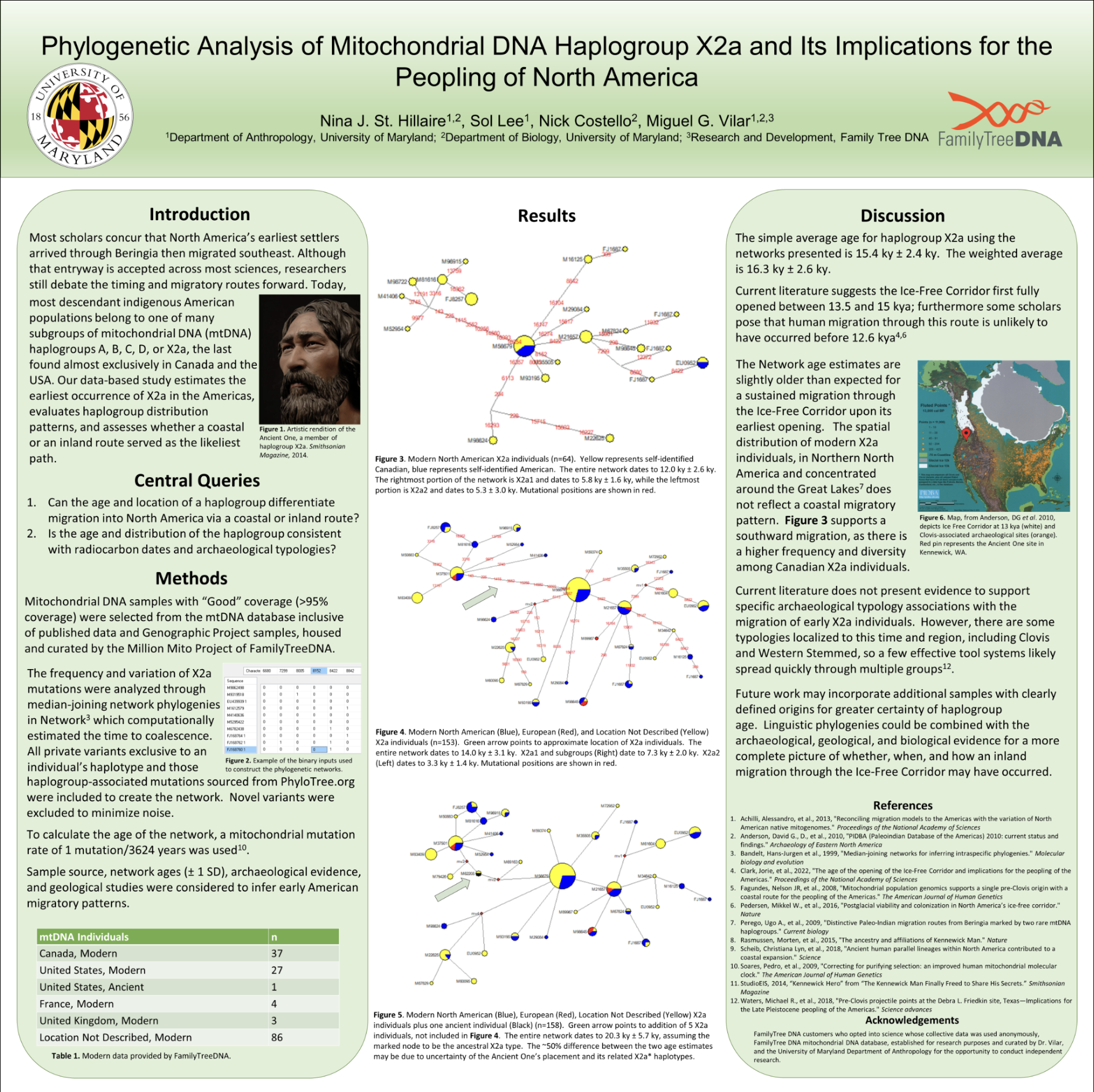 Nina used contemporary mtDNA samples to create a phylogenetic network that showed, genetically, humans may have migrated to Canada earlier than indicated by archaeological evidence.