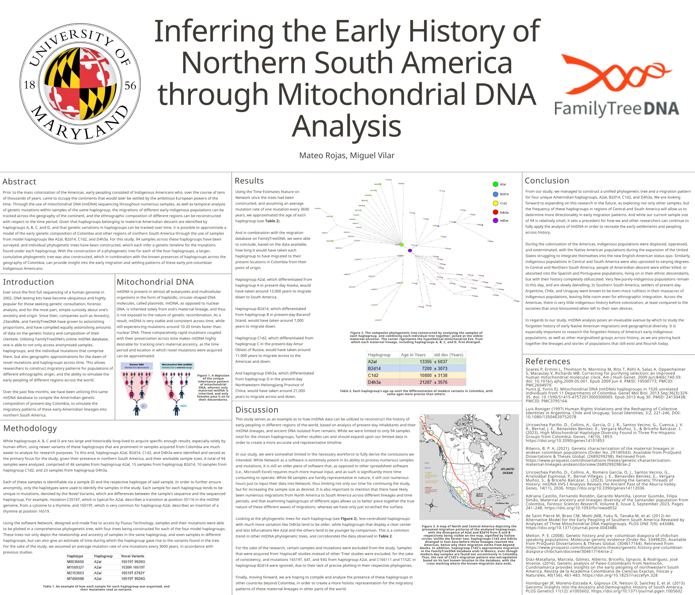 Mateo used modern haplogroup frequency around the northern portion of South America to calculate the time to their most recent common ancestor (TMRCA) to use a metric for migration/dispersion from Central America into South America.